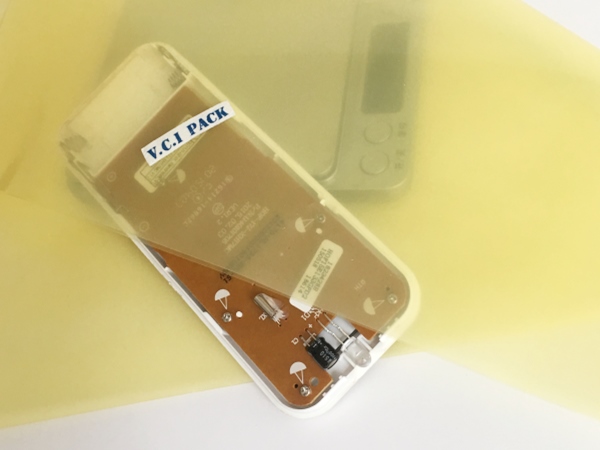 5、包裝空間---大型設(shè)備內(nèi)襯包裝及密集排列產(chǎn)品的包裝時(shí),建議配合其它VCI材料一起使用,如:防銹紙、防銹粉等